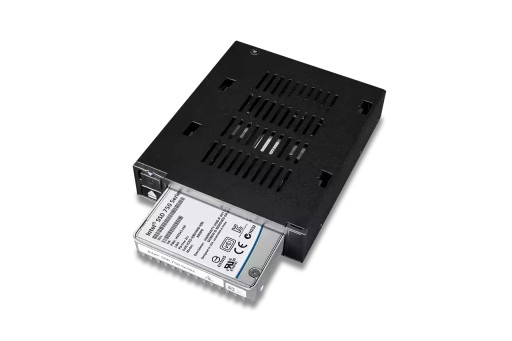 Otwarta konstrukcja MB021VP-B umożliwia błyskawiczną podmianę nośników U.2 NVMe SSD. Po zainstalowaniu dysku w zatoce zewnętrzny przycisk wysuwa się, a znajdująca się na nim kontrolka LED zapala się informując o jego gotowości do użycia.