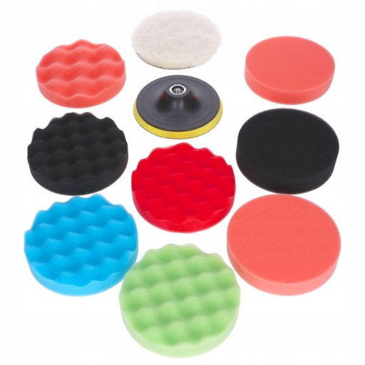 Zestaw padów, gąbek polerskich dzięki, którym wypolerujesz lakier w swoim samochodzie nawet w miejscach trudno dostępnych.