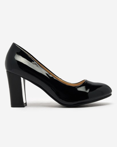 Klasyczne damskie lakierowane czółenka wykonane ze skóry ekologicznej. Para posiada okrągły nosek, charakteru dodaję grubszy obcas. Środek obuwia jest wyłożony skórą ekologiczną. Niezbędny element garderoby!