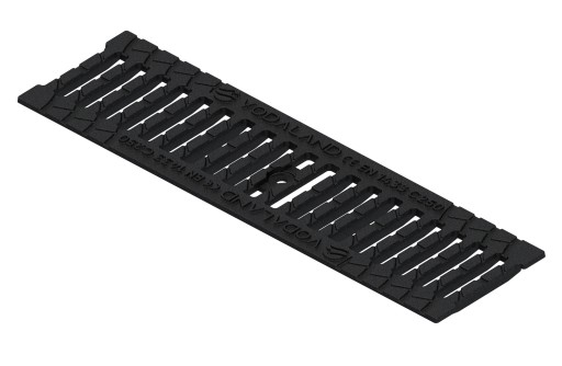 Odwodnienie liniowe z tworzywa sztucznego z rusztem żeliwnym kl. C250 o szerokości przekroju hydraulicznego 100 mm.