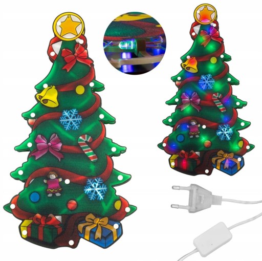 ŚWIECĄCA CHOINKA NA SZYBĘ LED PREZENT RGB WITRAŻ DEKORACJA LAMPION