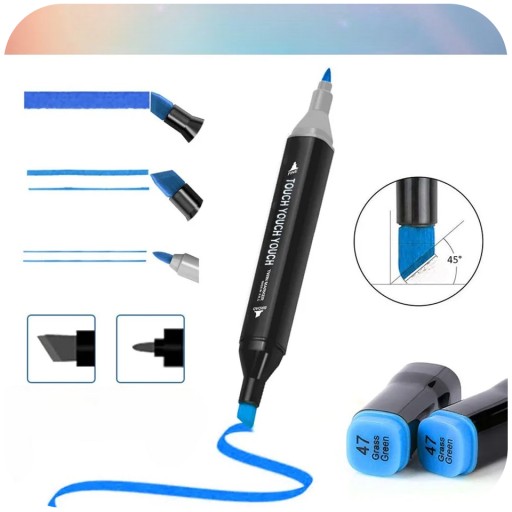 Każdy marker wyposażony jest w dwie końcówki: szeroka-płaska oraz cienka-punktowa. Dają one ogromne możliwości twórcze. Końcówki wykonane są z odpornego na ścieranie tworzywa, dzięki czemu markery będą służyć przez długi czas. Włókno końcówek nie rozwarstwia się, nie oddziela i nie podcieka.
