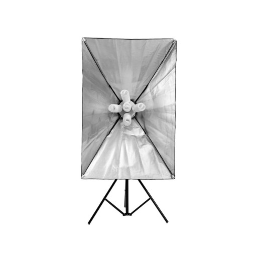 W komplecie kabel zasilający. Urządzenie posiada bezpiecznik. Softbox jest przystosowany do pracy z maksymalnie pięcioma żarówkami o maksymalnej mocy 85W każda. Softbox umożliwia skokową regulację mocy poprzez włączanie/wyłączanie każdej żarówki (0-20%-40%-60%-80%-100%) Zestaw mocuje się do statywów oświetleniowych za pomocą wbudowanego uchwytu, który umożliwia dowolną regulację kąta nachylenia.
