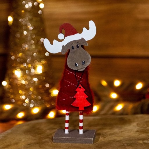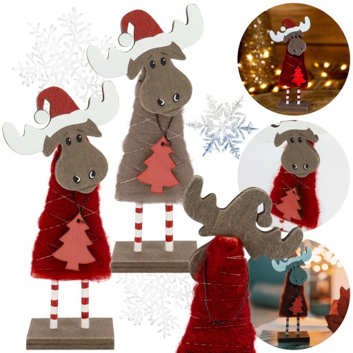 RENIFER ŚWIĄTECZNA DEKORACJA Z DREWNA STOJĄCA OZDOBA FIGURKA eko ŚWIĘTA
