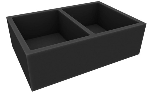 Taca piankowa podzielona jest na 2 przegródki w kształcie prostokąta i dedykowana jest do bezpiecznego przechowywania i transportu różnorodnych modeli z systemów tabletop w skali 28mm.