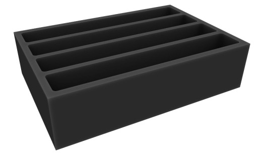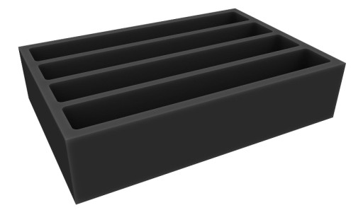 Taca piankowa podzielona jest na 4 przegródki w kształcie prostokąta i dedykowana jest do bezpiecznego przechowywania i transportu różnorodnych modeli z systemów tabletop w skali 28mm.