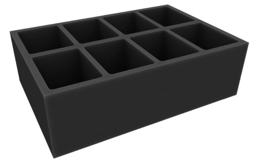 Taca piankowa podzielona jest na 8 przegródek w kształcie prostokąta i dedykowana jest do bezpiecznego przechowywania i transportu różnorodnych modeli z systemów tabletop w skali 28mm.
