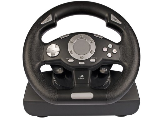 Kierownica TRACER Sierra USB; Kierownica Tracer Sierra należy do zaawansowanych technicznie urządzeń przeznaczonych do zastosowania w grach samochodowych, wyścigowych i symulacyjnych. Technologia Vibration Feedback, zastosowanie specjalnego antypoślizgowego tworzywa, ergonomiczne rozwiązania kształtu uchwytów i przycisków zapewniają wysoki komfort obsługi i pozwalają w pełni cieszyć się z emocjonującej zabawy. W kole kierownicy znajduje się 10 przycisków funkcyjnych oraz 8-kierunkowy dualpad. Dołączone pedały zapewniają pełny realizm każdej zabawy.