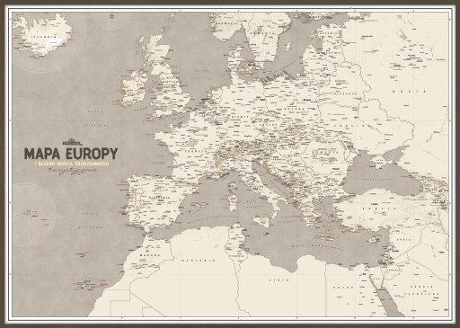 Mapa Europy i basenu Morza Śródziemnego na ścianę,