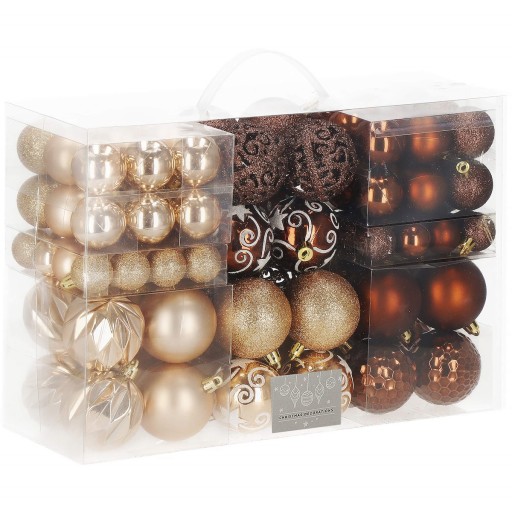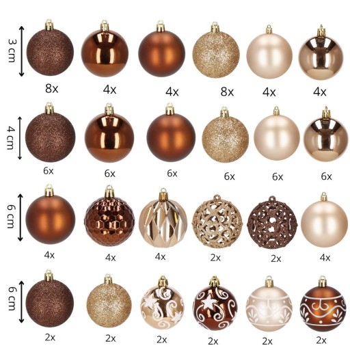 - 4x bombki teksturowane, połyskujące - brązowe - 6 cm