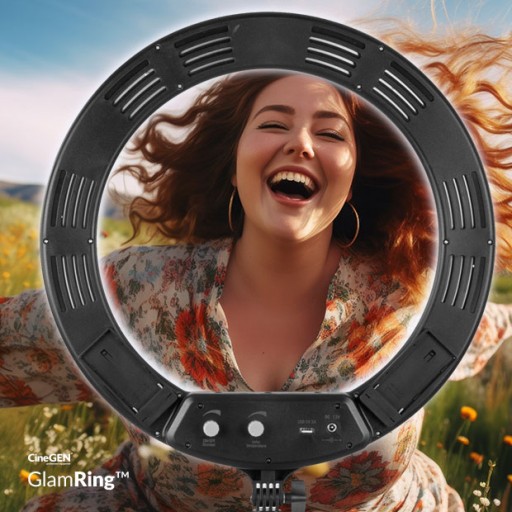 Lampa LED GlamRing™ firmy CineGEN to nie tylko źródło stabilnego światła - to lampa, która podniesie jakość Twoich nagrań na nowy poziom. Stworzona z myślą o elastyczności i mobilności. Bez względu na to, czy pracujesz w studio, czy eksplorujesz plener, ta lampa zapewnia równomierne i rozproszone światło typu glam. Przy zasilaniu sieciowym w warunkach studyjnych lub na akumulatory w plenerze - GlamRing™ utrzymuje niezmiennie wysoką jakość oświetlenia.