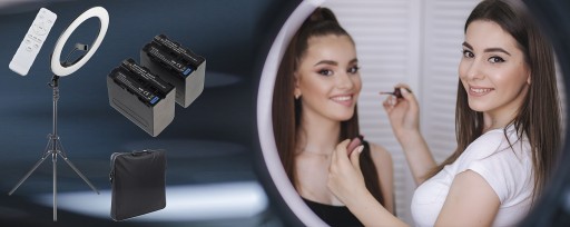 Кольцевой светильник, плавно регулируемый, 45см, 2 батарейки NP-970, управление с пульта HIT.