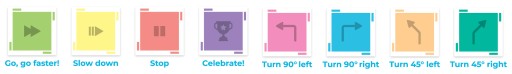 Każdy robot posiada 20 wytrzymałych silikonowych kart do kodowania w których skład wchodzą: