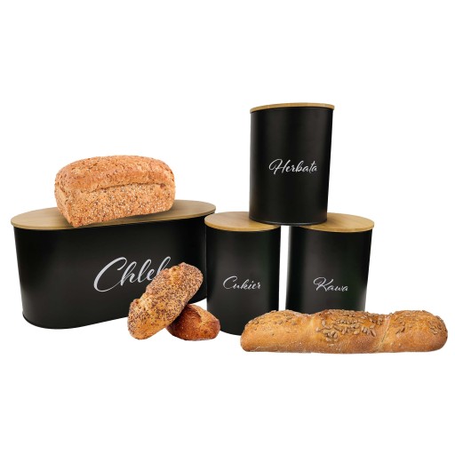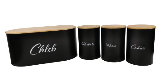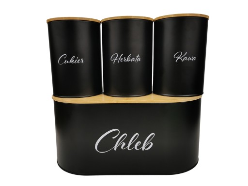 Zestaw wz01 CZARNY: Chlebak + Pojemniki na Kawę Cukier Herbatę