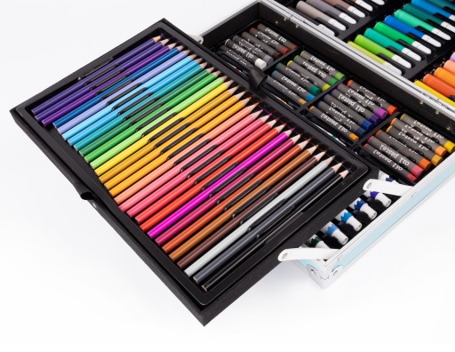 Zestaw składa się z różnych przyborów i mediów artystycznych, dzięki czemu Twoje dziecko nauczy się tworzyć rysunki i obrazki w różnych stylach i technikach. Gwarantuje on wiele godzin świetnej i twórczej zabawy dla małych artystów.