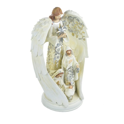 Ta imponująca bożonarodzeniowa szopka z Aniołem i Świętą Rodziną przyozdobi Wasze wnętrza i nada im świątecznego stylu. Będzie również doskonałym prezentem na święta.