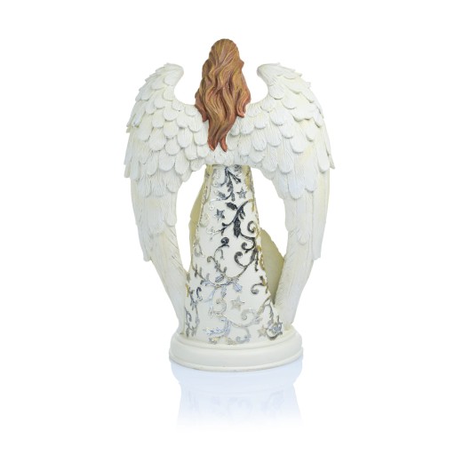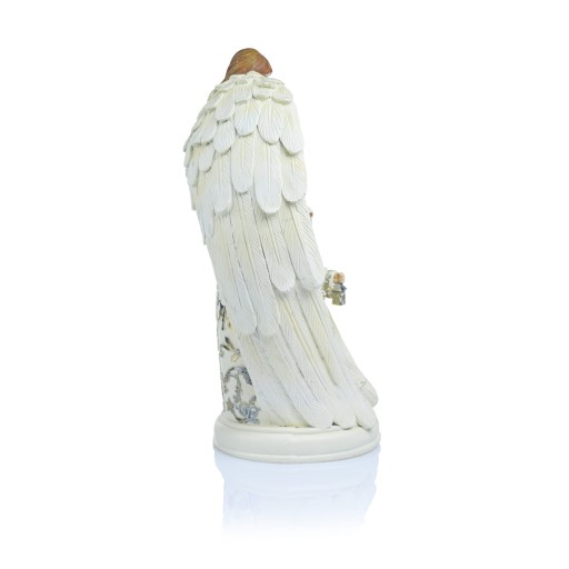 Okazała figura przedstawia Anioła Stróża z rozpostartymi skrzydłami. Zarówno suknia, jak i skrzydła przyozdobiono złoto-srebrnymi dekorami, nawiązującymi do tematyki zimowo-bożonarodzeniowej. Dostojna postać trzyma w dłoniach Gwiazdę Betlejemską i spogląda na ukrytą w jego skrzydłach Świętą Rodzinę.