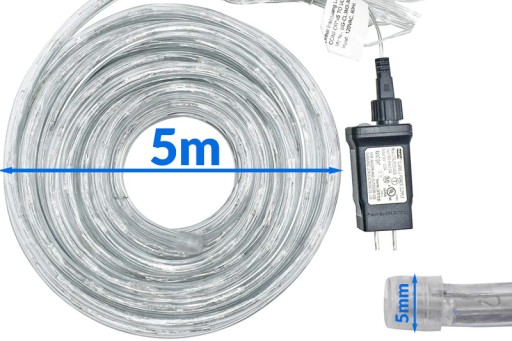 - Długość: 8m (5m odcinek świecący + 3m kabla)