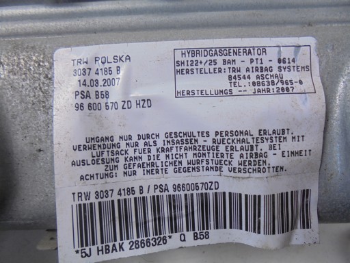 КОЛЕННАЯ ПОДУШКА БЕЗОПАСНОСТИ 96600570ZD CITROEN C4 PICASSO I