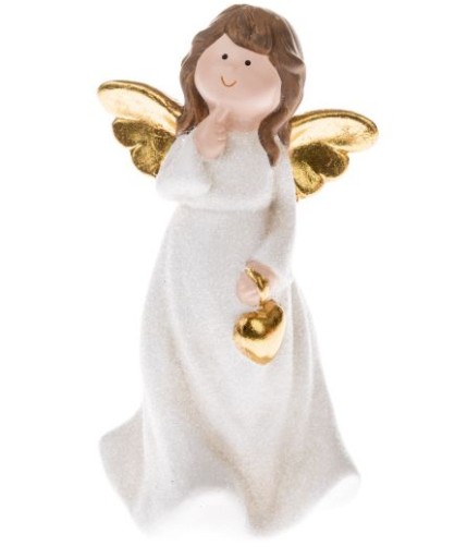 Urokliwa świąteczna dekoracja to nasz aniołek, który zachwyca złotymi skrzydłami i serduszkiem. To piękne świąteczne dzieło sztuki stworzone, by dodawać magii każdemu wnętrzu. Idealny jako wyjątkowy prezent dla bliskich.