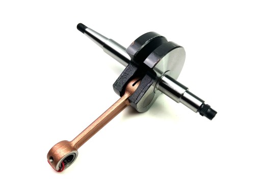 Wał korbowy renomowanej firmy Duells do motoroweru Komar. Wał jest wyważony. Posiada łożysko igiełkowe na stopie korbowodu i na główce (w miejscu mocowania tłoka). Wyrób sprawdzony przez wielu odbiorców. Dobrej jakości. Na innych aukcjach korbowody firmy Duells i inne części tej firmy.