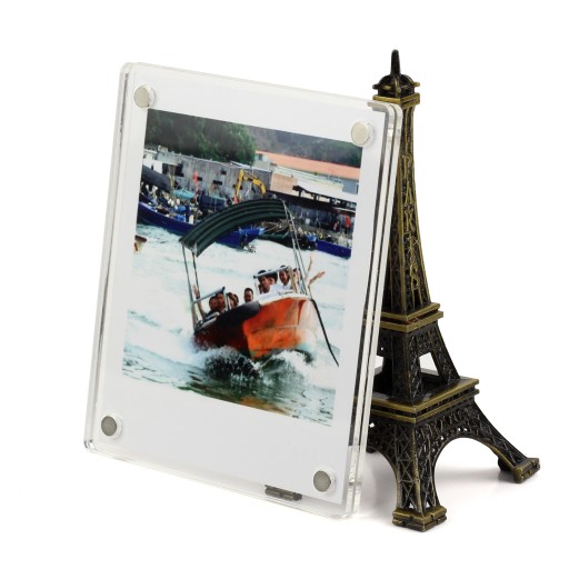 Ramka umożliwia zamocowanie zdjęć przy pomocy magnesu, na lodówce, mikrofalówce, innych powierzchniach metalowych.