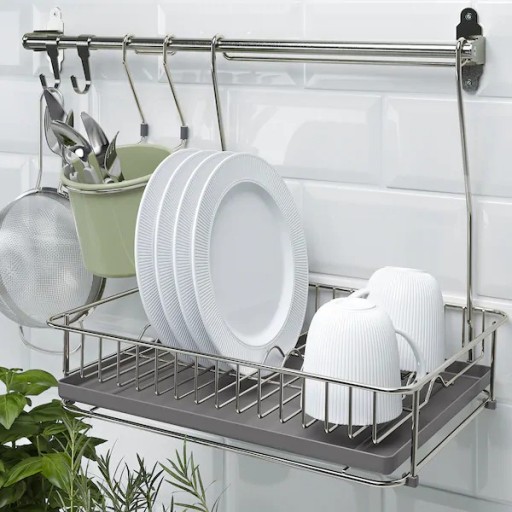 - Można uwolnić miejsce na blacie wieszając przybory kuchenne na szynie.