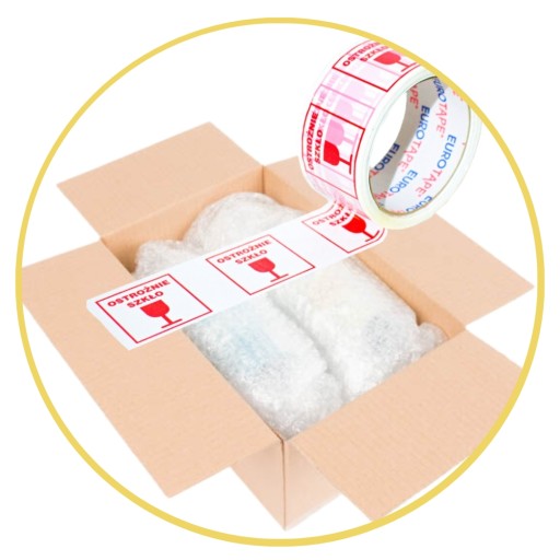 - Papier pakowy i taśma «Оstrożnie» do pakowania kartonu transportowego