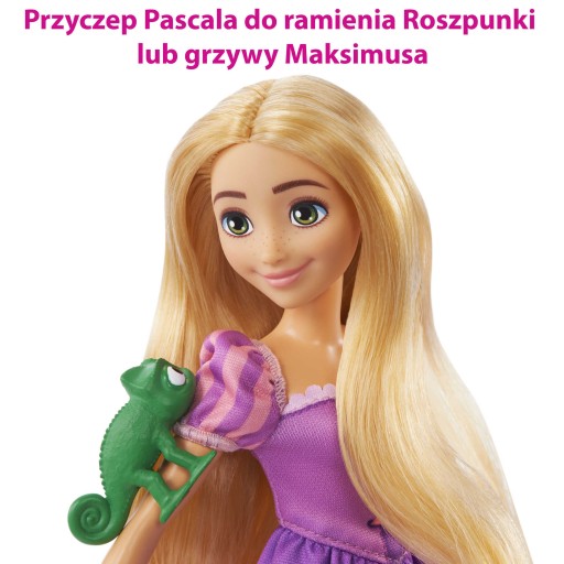 - W zestawie jest też urocza figurka Pascala, którą można przyczepić do ramienia Roszpunki lub grzywy Maksimusa.