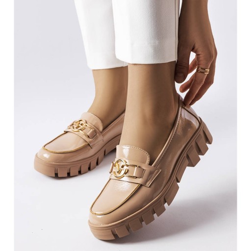 Beżowe lakierowane mokasyny Vinceza