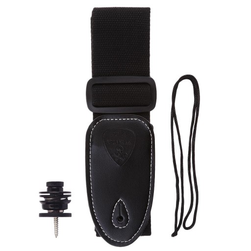 Regulowany pasek do gitary ze skórzanym końcem blokada paska do gitary basowej w kolorze czarnym