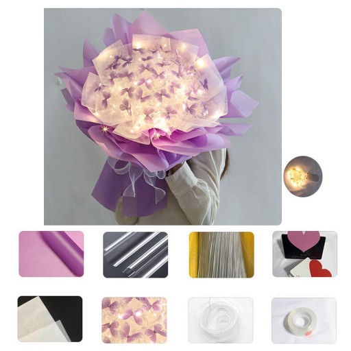 Bukiet Kwiatów Motyli Kwiatowy Prezent Pakiet Materiałów DIY Fioletowy 33 Motyl