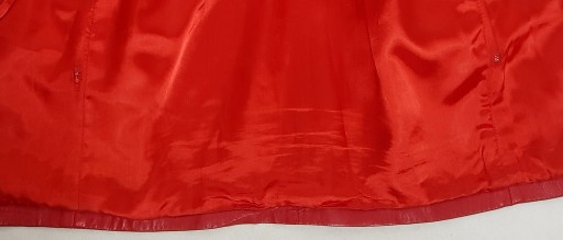 Oferuję do sprzedania lekką marynarkę firmy BRITISH TAILORS wykonaną z naturalnej mięciutkiej skóry licowanej , fason oversizowy na dużych poduszkach(można wypruć poduszki) można nosić swobodnie lub spiąć w talii paskiem,zapinany na guziki,wewnątrz atłasowa podszewka kurtka nieocieplana typowo wiosenno letnia, kolor czerwony .Używana stan bdb-,nosi leciutkie ślady użytkowania,przy kieszeni ciemniejsza ryska/ostatnie zdjęcie oraz dwa małe przetarcia podszewki w dole po bokach kurtki .Rozmiar z metki -- na XS/S będzie oversizowa, na M bardziej dopasowana ,ale proszę sprawdzić wymiary
