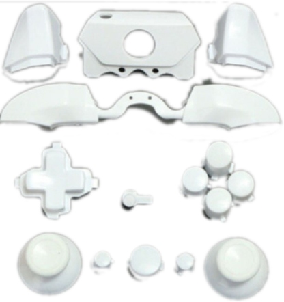 - W zestawie znajdują się wszystkie części widoczne na zdjęciu: przyciski, triggery, bumpery, d-pad, grzybki, zaślepka