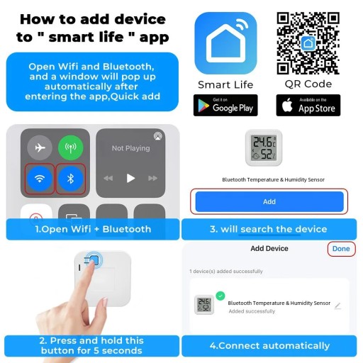 ✅ smart: możliwość połączenia z aplikacją do odczytu danych przez Bluetooth v5.0 (aplikacja Tuya Smart),