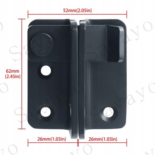 Wiele zastosowań zawiera zarówno ruby lizgowe jak i otwór na kódk. Wykonany z wysokiej jakoci stali nierdzewnej zapewniajcej jako i trwao przy wilgotnej pogodzie. Imponujca matowa powierzchnia w kolorze czarnym przyjemne uczucie w dotyku. Wymiary produktu 52 mm x 62 mm d. x szer.. Zawarto opakowania 1 zatrzask i 4 ruby.