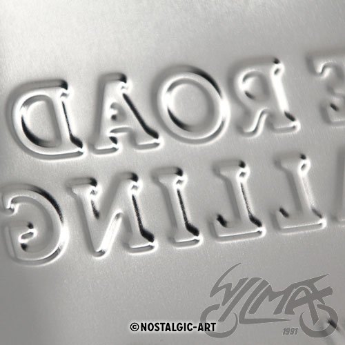 Szyld wykonany z grubej blachy stalowej. Dzięki głębokiemu tłoczeniu zyskuje sztywność i unkalny wygląd. Napisy i elementy graficzne są wypukłe dla efektu trójwymiarowego. Całość wykończona wysokiej jakości nadrukiem wykonanym farbami o podwyższonej trwałości.
