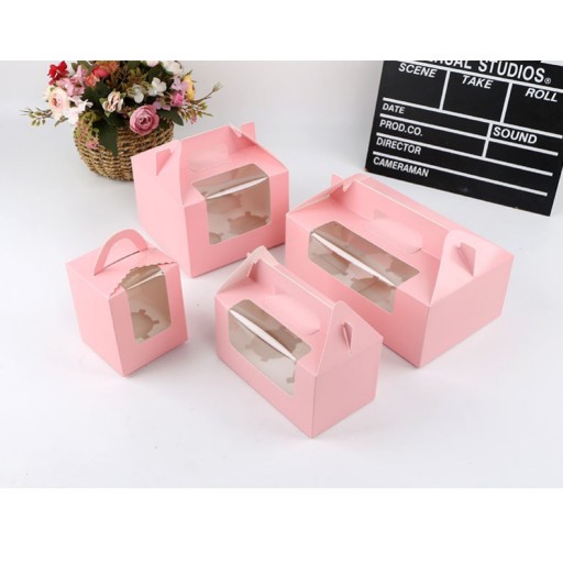 Pudełko papierowe Kraft z okienkiem przezroczyste PCV 1 2 4 6 otworów foremka na muffinki pudełko do pakowania ciastek na przyjęcie urodzinowe Baby Shower dekoracje ślubne