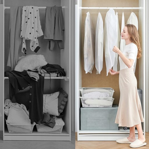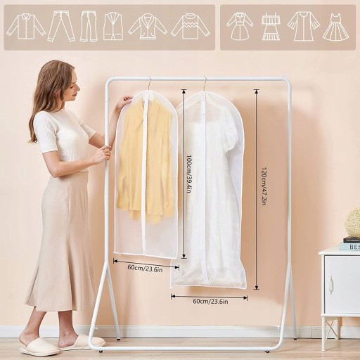 🌈【Dwa rozmiary】 Ten produkt jest dostępny w 2 rozmiarach, w tym 6 sztuk (60 x 100 cm) i 6 sztuk (60 x 120 cm). Nadaje się do prawie wszystkich rodzajów odzieży, takich jak marynarki, garnitury, suknie wieczorowe, płaszcze, jedwabne sukienki, szaliki, koszule itp. 5 cm górny otwór na wieszaki. Zamki błyskawiczne są wyłożone i starannie wzmocnione, dzięki czemu można je łatwo przesuwać bez zaczepiania lub łamania.