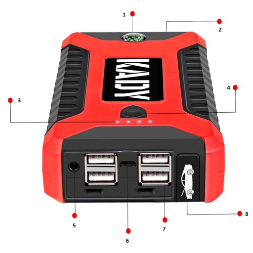 Uruchamianie pojazdów na wyciągnięcie ręki: KADY umożliwia szybkie uruchomienie motocykli, skuterów, quadów, łodzi, czy nawet samochodów w przypadku słabego lub całkowicie rozładowanego akumulatora. Zapomnij o martwieniu się zanim ruszysz w trasę!