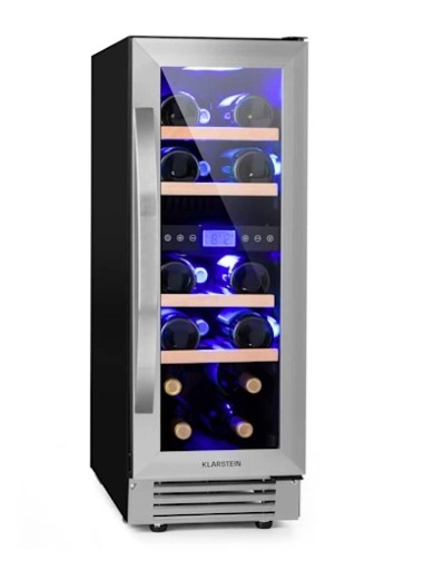 Wysokiej jakości wzornictwo i kolorowa prezentacja: Dwustrefowa chłodziarka na wino Vinovilla Duo 17 marki Klarstein pokazuje, co ma! To znakomity wybór dla wszystkich miłośników wina, którzy chcą nie tylko mieć duży zapas trunku, ale także odpowiednią jego prezentację. Oprócz nowoczesnych drzwi szklanych Vinovilla Duo 17 przekonuje do siebie przede wszystkim dwoma strefami chłodzenia z różnymi temperaturami składowania oraz 3-kolorowym oświetleniem wnętrza. Dzięki temu stanowi element przyciągający wzrok, a 3-kolorowe oświetlenie z możliwością zmiany kolorów uwydatnia jej zawartość odpowiednim kolorem przy każdej okazji - witamy w pierwszej lidze składowania wina!