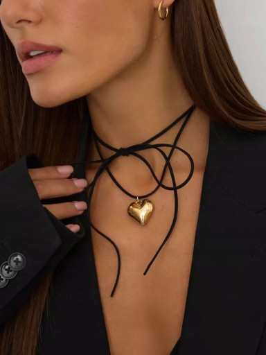 ЧЕРНОЕ ЧОКЕРНОЕ ОЖЕРЕЛЬЕ С ЗОЛОТЫМ РЕТРО-РЕМЕНЕМ, ДЛИННАЯ ЛЕНТА НА ШЕЕ