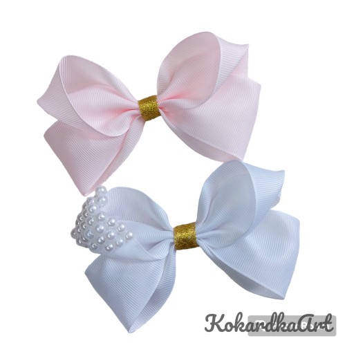 Dwie opaski na opasce bezuciskowej doskonale dostosują się do główki dziecka. Kokardy w kolorze białym oraz jasny róż idealny dodatek na główkę dziecka.