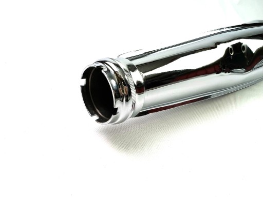 Komplet chromowanych tłumików (z dwiema nakrętkami służącymi do mocowania kolanek z tłumikami) typu cygaro, komplet chromowanych kolanek do motocykla Jawa 250 typ 353. Tłumiki przeznaczone są do kolanek o średnicy około 40 mm.
