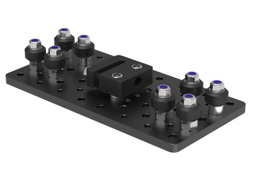 - Regulowany otwór środkowy pozwala na konfiguracje z siłownikiem pasowym oraz śrubami trapezowymi