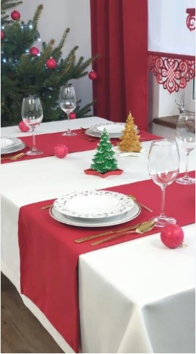 Bieżnik z satyny Świąteczny Obrus czerwony Długi 34 cm x 9m