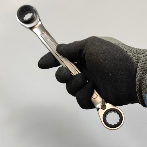 ✳️ Napęd: podwójne oczko z profilem POWERDRIV® 12-kątne, mechanizm grzechotkowy drobnouzębiony, 72 zęby, przełącznik kierunku działania prawo/lewo do obsługi jedną ręką.