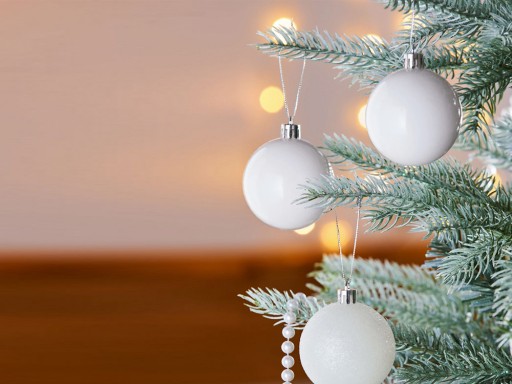 Białe, mieniące się ozdoby na choinkę idealnie wpiszą się w świąteczny klimat, wprowadzą do wnętrza mnóstwo blasku.