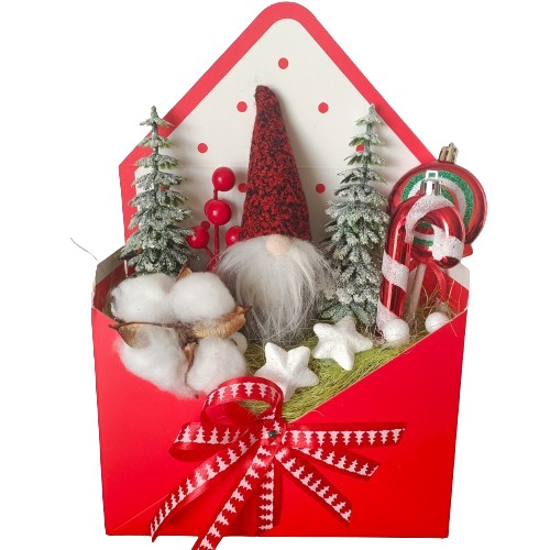 - WYPEŁNIONY DUŻĄ ILOŚCIĄ DEKORACJI M,IN. BROKATOWE GWIAZDKI, MIENIĄCE KULKI, CHOINKI, SUSZONA LUFFA, MINI BOMBECZKI