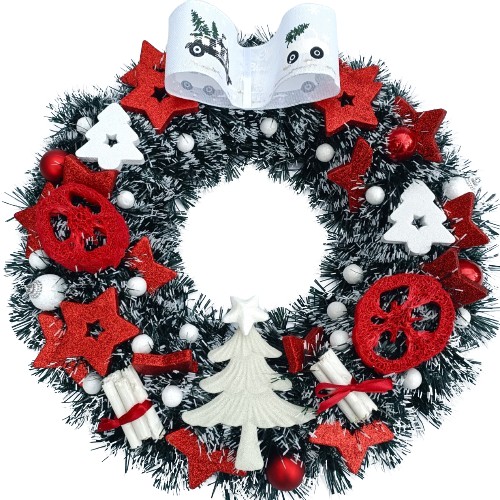 РОЖДЕСТВЕНСКИЙ ВЕНОК НА ДВЕРЬ, РОЖДЕСТВЕНСКИЙ ВЕНОК, ПЛАТЬЕ, 40 СМ, КРАСНЫЙ